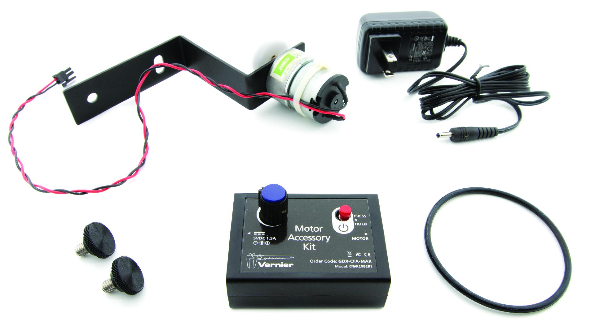 這套件用來控制Go Direct®向心力實驗裝置的旋轉速率,使學生能夠專注於單一變數,深化對因果關係的理解。馬達附件套件以恆定的角速度驅動實驗裝置,同時讓學生評估需要維持物體以指定半徑旋轉所需的向心加速度和/或力。旋轉速率可調整。